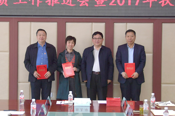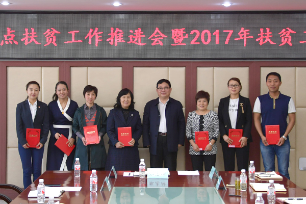 党委书记张志坤为获得2017年度定点扶贫工作“先进团体”颁发证书