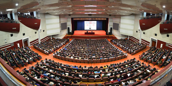 为认真学习宣传贯彻党的十九大精神,全面领会和准确把握党的十九大精神内涵,11月15日下午,我校在科学会堂召开学习贯彻党的十九大精神宣讲报告会,黑龙江省委宣讲团成员、党的十九大代表、伊春市委书记、我校优秀校友高环为学校教师代表、学生代表及我校十九大精神骨干培训班的全体学员做十九大精神专题辅导报告。在家学校领导出席报告会。报告会由党委副书记陈文慧主持。
