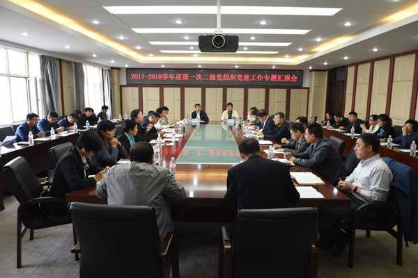 9月15日上午,学校在综合办公楼第八会议室召开2017-2018学年度第一次二级党组织党建工作专题汇报会。在家的学校党委常委、党委各部办负责人以及各二级党组织书记参加了汇报会。汇报会由党委组织部部长孙猛主持。