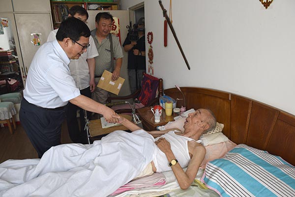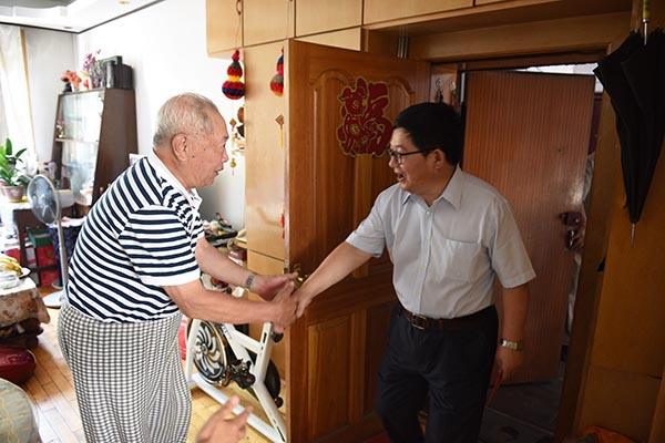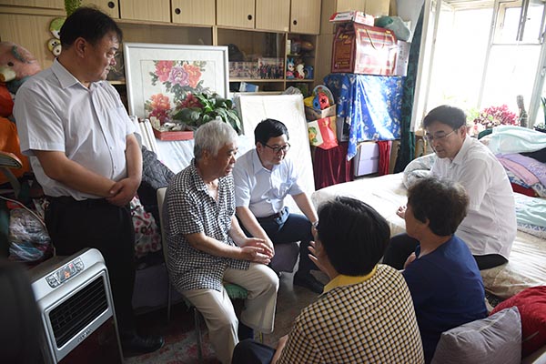 “身体怎么样?”“儿女都在身边么?”“生活上有没有什么困难?”在离退休党员家中,张书记亲切询问老党员们的生活近况和身体状况,关心他们的日常生活、住房条件和看病买药花费等情况。当看到一些老党员卧病在床时,他殷殷叮咛要多保重身体;当看到一些常年患病的老党员得到老伴精心照料时,他赞不绝口倍感欣慰。张志坤书记、蔺海波副书记的到来和问候感动着老党员们,照顾姜志贵15年之久的老伴动情地说:“感谢学校领导的关怀,感谢学校这么多年的照顾,今天能够看到领导们到家来真是特别的开心,请组织放心,我一定会继续把老伴照顾好!”