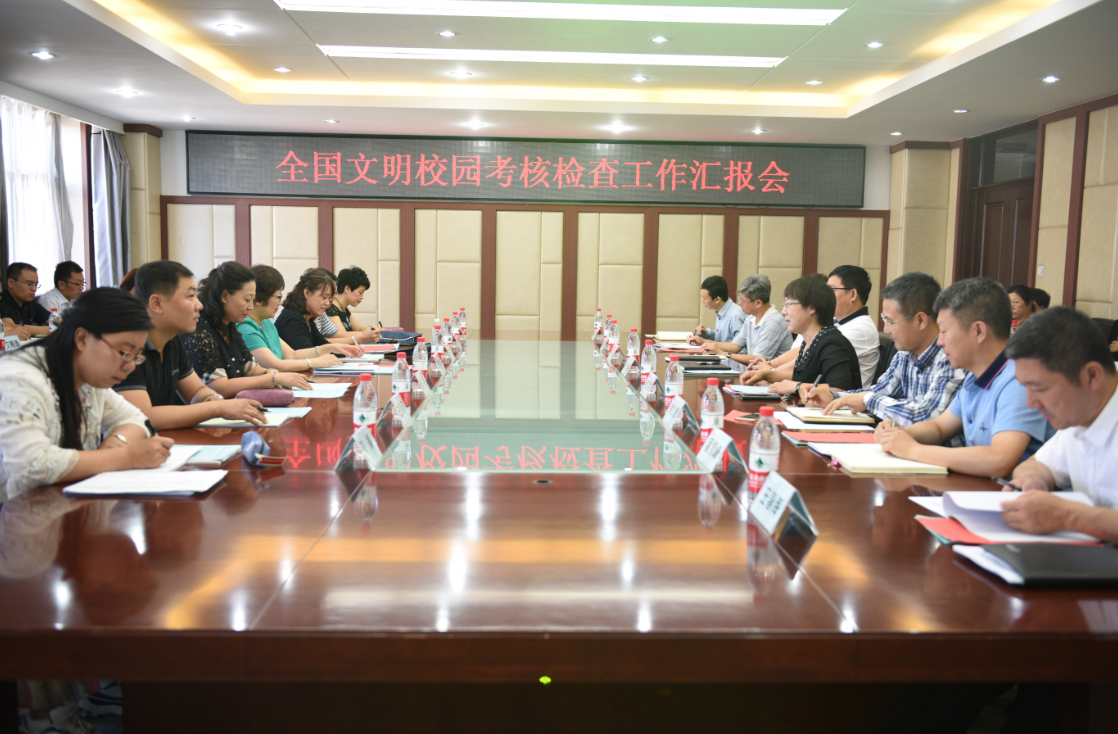 党委副书记陈文慧代表学校党委,从着力加强思想道德建设,扎实抓好领导班子建设,大力推进师德师风建设,深入推进校园文化建设,切实抓好优美环境建设,不断强化阵地建设管理,以及突出生态文明教育特色、打造文明校园品牌七个方面,对学校文明校园创建工作进行了汇报。