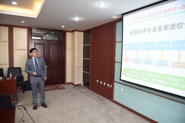 在见面会上,林学院副院长孙龙从专业认证自评自建情况、存在的主要问题与解决方案、专业认证的理解与体会三个方面,做了林学专业认证补充汇报。