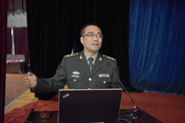 黑龙江省军区学生军训教研室教官杨宇中校做征兵宣讲