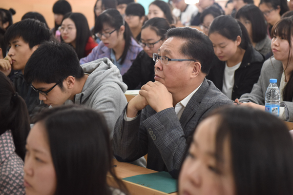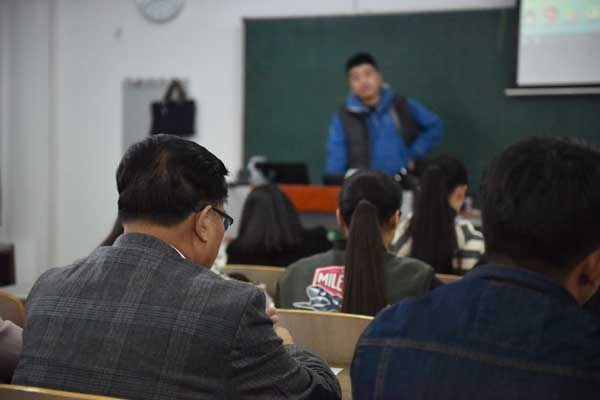 26日上午,杨传平校长准时来到锦绣楼T301,与2015级园林1、2班的同学一起上课,内容是《马克思主义基本理论》。在课堂上,杨校长坐在同学们中间,认真听课、做笔记、观看视频短片,在课间与同学们讨论课程内容。
