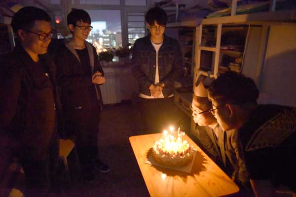 当夜幕降临,杨校长来到15号学生宿舍楼,1315寝室的同学请他闭上眼睛,片刻后,当杨校长睁开眼睛,他惊讶的发现同学们端着一个生日蛋糕,同声祝愿“祝您生日快乐!”徐浩同学解释说“杨校长,我们是在今天的主题团日的讨论中知道您刚刚过完生日,这么重要的日子,我们不想缺席,请允许我们补上这个生日祝福。”看到同学们满脸期待,杨校长非常感动“感谢同学们这份心意,虽然我的生日并不是今天,但这真的是我最有意义的一个生日!”他与同学们一起吹熄蜡烛,唱生日快乐歌,分享了蛋糕。在寝室熄灯之后,大家还意犹未尽,聊起各自家乡风俗,深夜才睡去。杨校长以学长的角度告诉大家,人生没有过不去的坎,希望同学们不要为生活中、学习中遇到的难题而困惑,要向师长求助,学校一定会尽力让同学们经历一个圆满、快乐的大学生涯,完成人生最重要的知识与技能积累。徐浩同学说:“本来开始挺紧张的,后来就不紧张了,没想到杨校长这么了解各地的风俗习惯,感觉校长特别平易近人,像是一位知识渊博,又特别没架子的学长,不管啥事,到他那里都很好解决。”