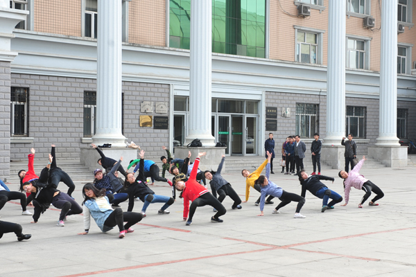 27日清晨,杨校长与学生们来到逸夫楼,园林学院的同学正在进行集体舞的团体演练,为参加校级团体舞比赛做准备。杨校长说:“同学们的集体舞非常完美,肯定经过了刻苦的训练,希望同学们能在校团体舞比赛中,拿到理想的好成绩,拿个七连冠。”