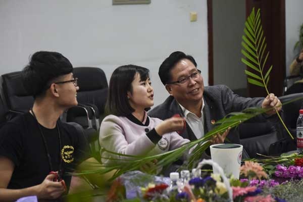 课后,2015级园林1班的同学将杨校长小组的插花作品作为礼物,献给了杨校长。杨校长借此勉励同学们,希望大家像鲜花一样,保持活力、约束自己,在大学生活中含苞怒放,做快乐自己、温暖社会的有用之才。
