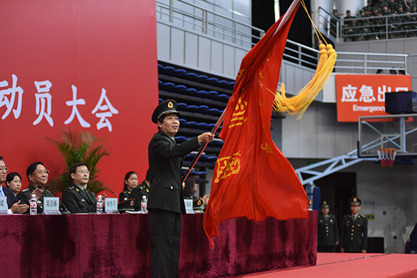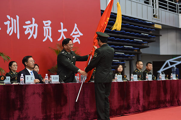 副校长、军训团团长李斌代表军训团接旗