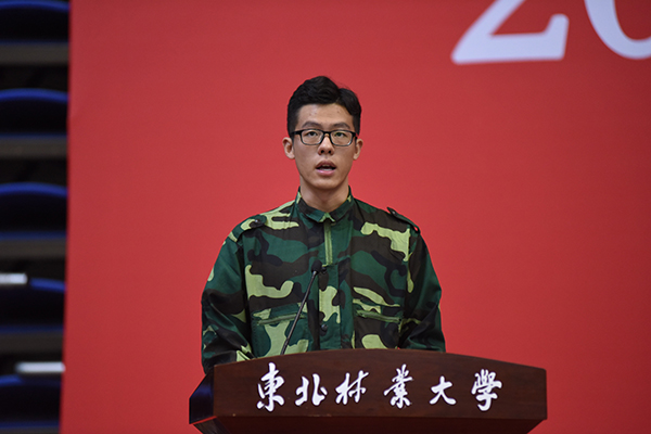 文法学院2016级法律专业3班丛涣庭在动员大会上发言,他表示要以军人的高标准、严要求规范自我,以军人的情怀、军人的姿态,践行青春的誓言,体验生命的精彩。