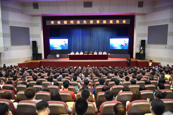 听取报告的2015级工程技术学院的张旭同学说:“听取了李保国先进事迹报告会,我感触很深,我是一名刚刚转正的共产党员,也是一名农村的学子,我要学习李保国同志扎根农村,将自己所学的知识带回家乡、致富家乡。”