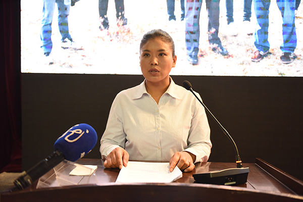 河北农大研究员、李保国同志的妻子郭素萍作报告