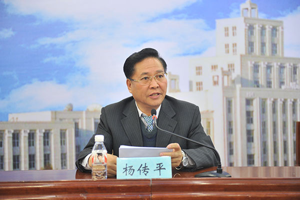 校长杨传平在讲话中强调,要统一思想,高度重视,增强大局意识;要凝神聚力,攻坚克难,增强问题意识;要分工明确,科学客观,增强质量意识;要评建结合,注重实效,增强改革意识。