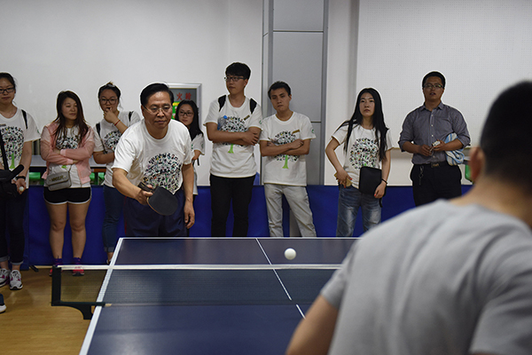 19日下午,杨校长来到颐丰园学生活动中心,参加这里举行的“成栋杯”创业项目路演,听取了“博智﹒智能机器人科技有限公司”和“哈尔滨绿嘉信息科技有限公司”两支创业团队的项目介绍。之后,杨校长来到学校新体育馆,换上运动服,参加了农林经济管理2013级1班、2班学生乒乓球比赛。同学们都很兴奋,纷纷给杨大大的乒乓球技点赞。随后,杨校长来到田径场观看校集体舞大赛。