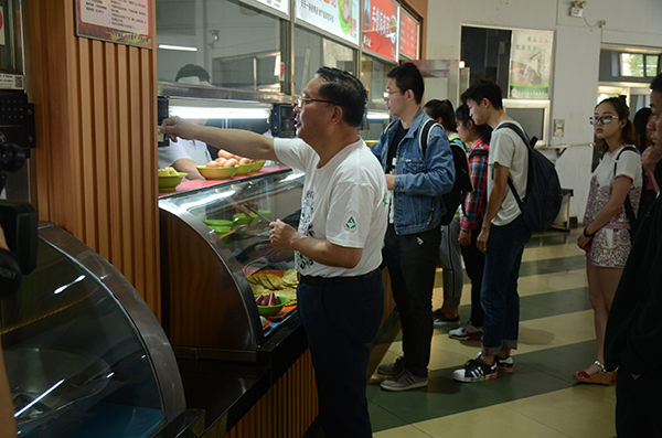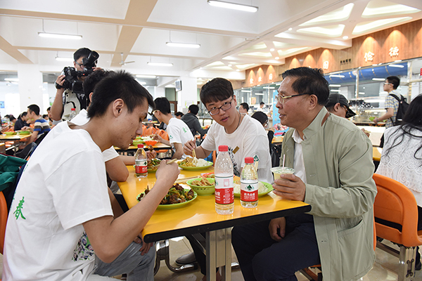 19日中午,杨校长来到俭德园一楼,与在这里吃饭的学生共用午餐。“你这套餐多少钱呀?班里少数民族同学饮食有什么困难吗?”杨校长一边吃着,一边亲切地与学生聊饮食习惯、饮水情况、业余爱好……杨校长一再叮嘱后勤部门要保证食品安全卫生、种类丰富多样,同时菜品价格要优惠,给学生创造良好的饮食环境。