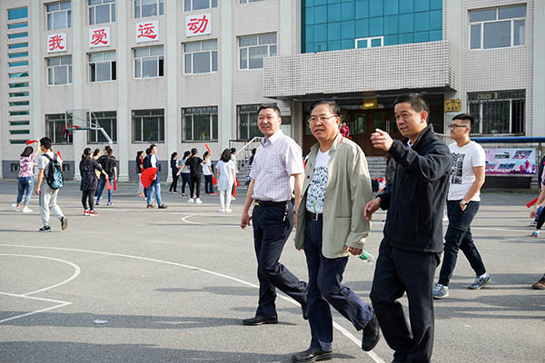 20日清晨,杨校长与学生们来到田径场、篮球场、网球场,观看大学生晨练和各社团活动情况,他希望当代大学生要有健康的体魄,能为国家多做贡献。
