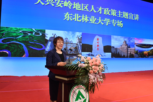 党委副书记陈文慧在会上致辞。她表示,本次宣讲活动既是全面展示新时代兴安风貌,也是深入贯彻落实黑龙江省委人才政策、全面提高人才服务振兴发展质量的重要举措。她指出,东林始终扎根龙江大地办大学,学校与大兴安岭在多个领域开展深度合作,建立了长期、稳定、可靠的伙伴关系和人才供需关系,希望广大师生、有志青年,践行习近平生态文明思想,响应新时代召唤,走进新兴安,建设新龙江,以扎实举措助推东北振兴,以做好人才工作的优异成绩献礼新中国70华诞。