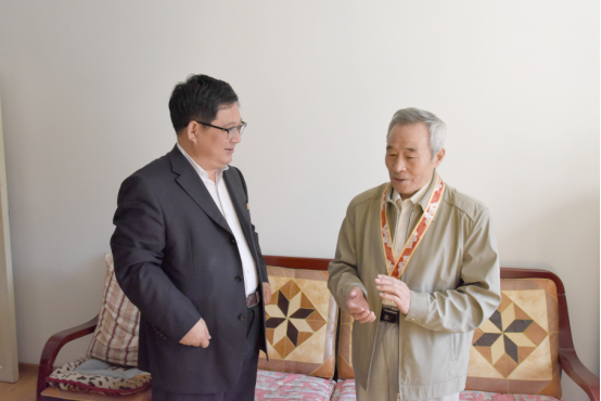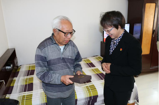 党委书记张志坤、校长李斌、党委副书记陈文慧分别走访看望了李坚院士、84岁的姚庆、93岁的任庆林、91岁的毛贵忠、93岁的孙廷俊、87岁的王杰、87岁的刘国恩、89岁的侯克忠等八位离退休老同志代表以及国家科学技术奖获得者代表付玉杰、谢延军两位老师。学校领导为他们颁发并佩戴了由中共中央、国务院和中央军委颁发的“庆祝中华人民共和国成立70周年纪念章”。