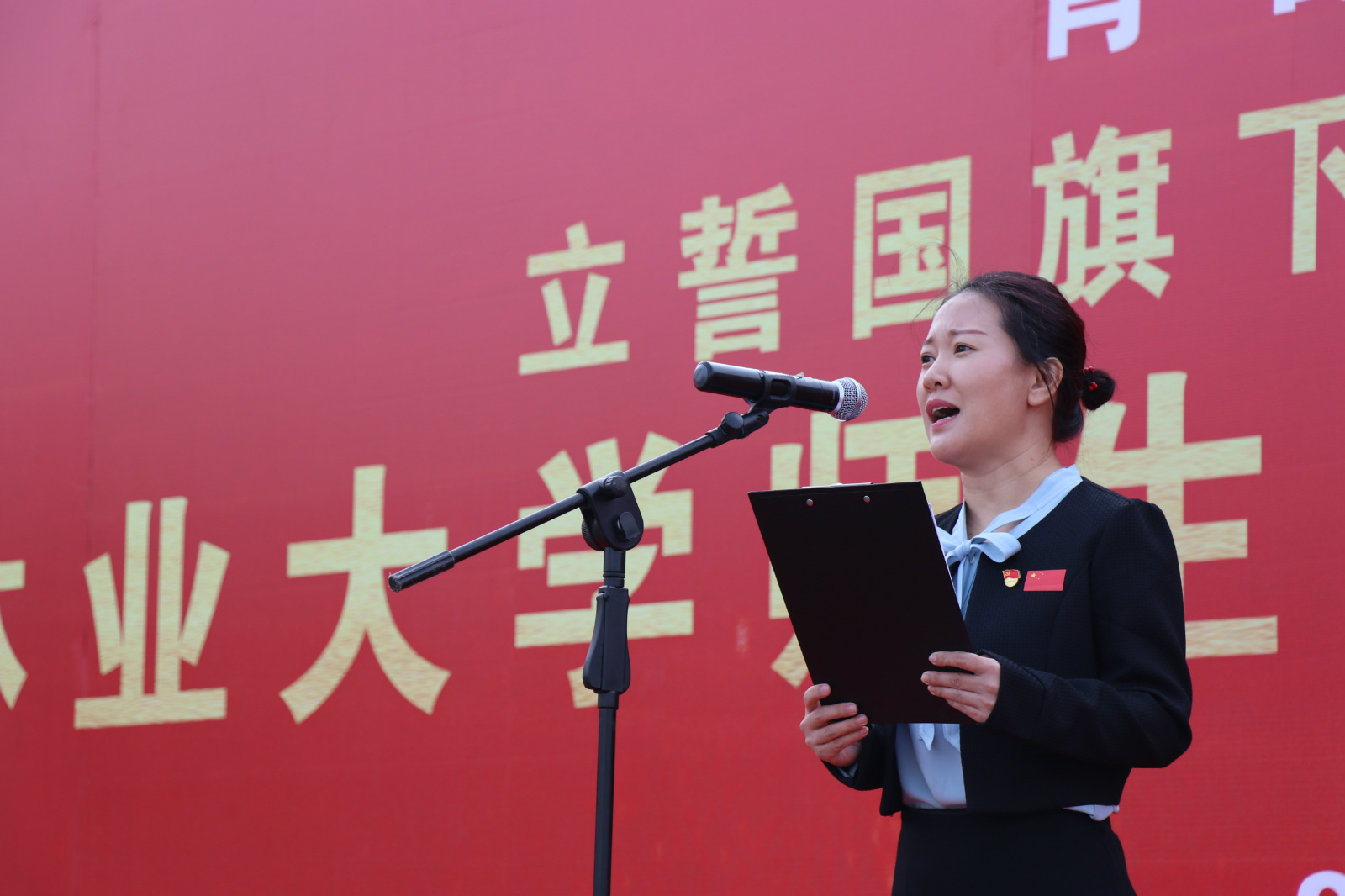 我校野生动物专业本科83级校友、黑龙江扎龙国家级自然保护区管理局副局长、高级工程师王文锋作为校友代表发言,他号召更多的东林学子投身到火热的生态保护事业,勇敢肩负起建设美丽中国的历史重任。教师代表、全国辅导员年度人物、生命科学学院辅导员郭婷婷表示,将不忘立德树人初心,牢记人才培养使命,继续扎根在辅导员工作一线,用育人育才的梦想坚守初心。园林学院的杨丽媛同学代表所有东林学子在国旗下庄严宣誓:用奋斗的我,致敬最美的国,把远大理想和脚踏实地统一起来,将个人理想融入民族复兴中国梦,努力成长为担当民族复兴大任的时代新人。