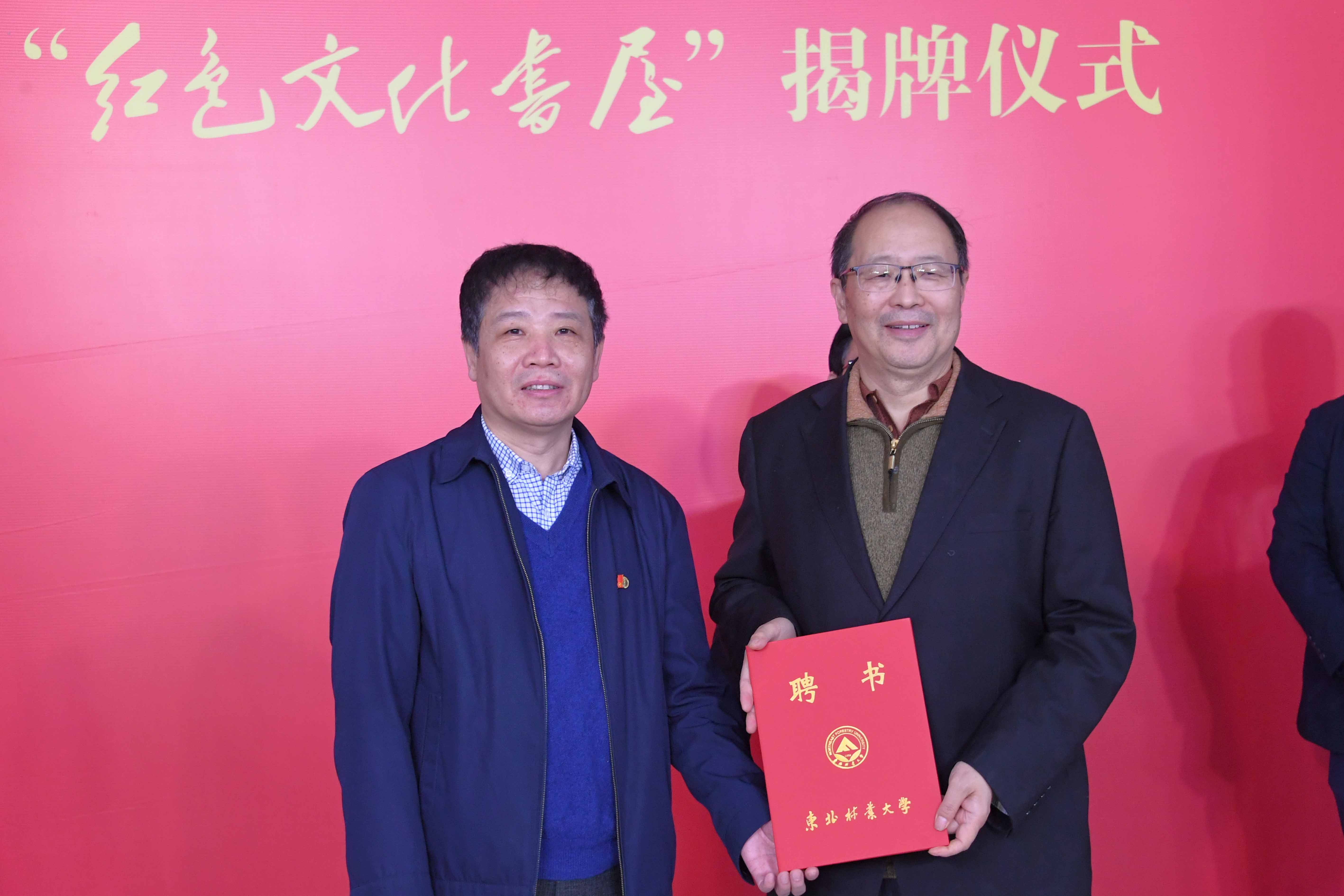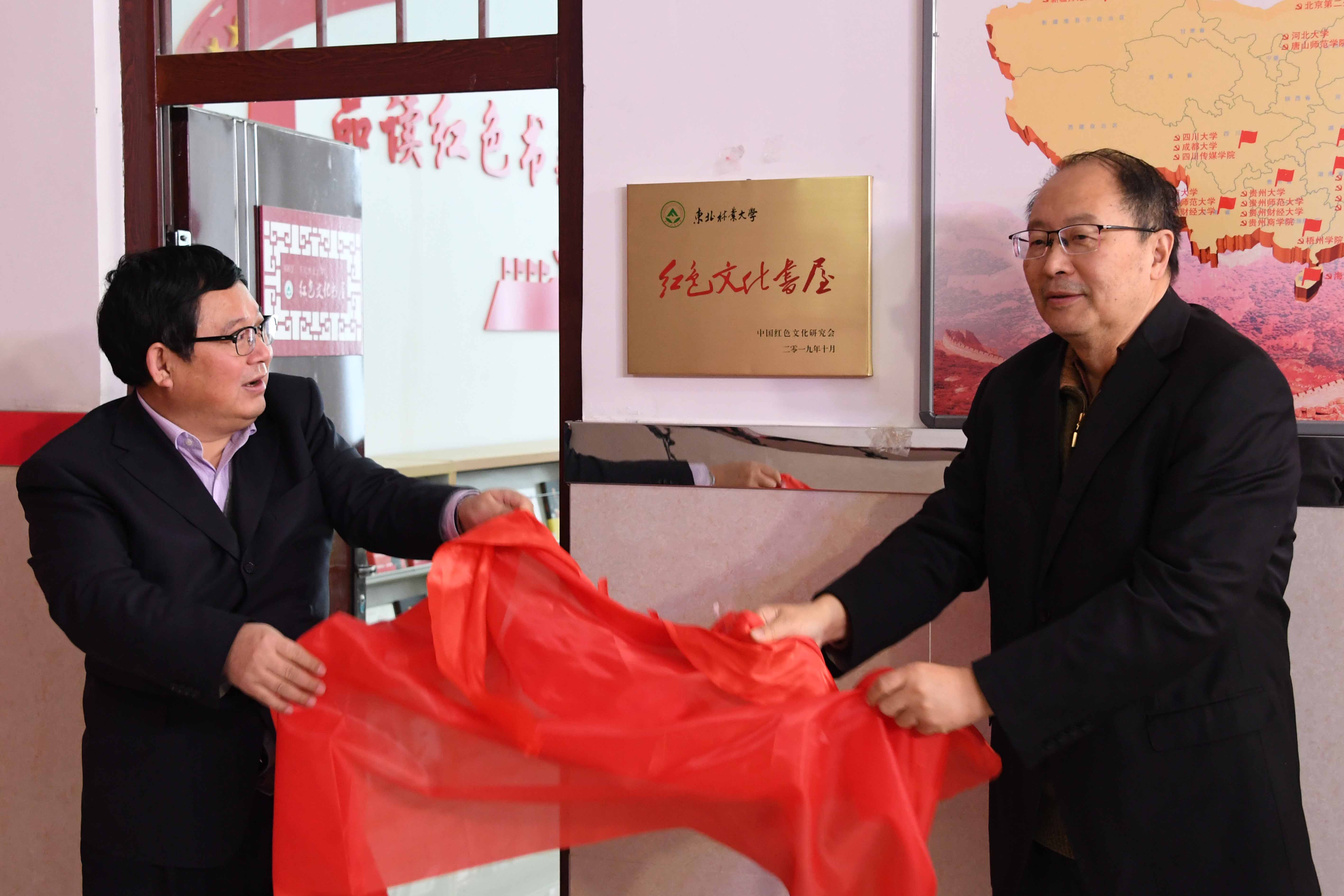 12月23日,由中国红色文化研究会发起、我校承建的“红色文化书屋”正式揭牌。书屋位于我校颐丰园4楼大学生文化活动中心,现有党史、党建、名人传记等图书千余册,今后将成为学校党建和思想政治工作的新载体,更好地发挥红色文化的积极影响。