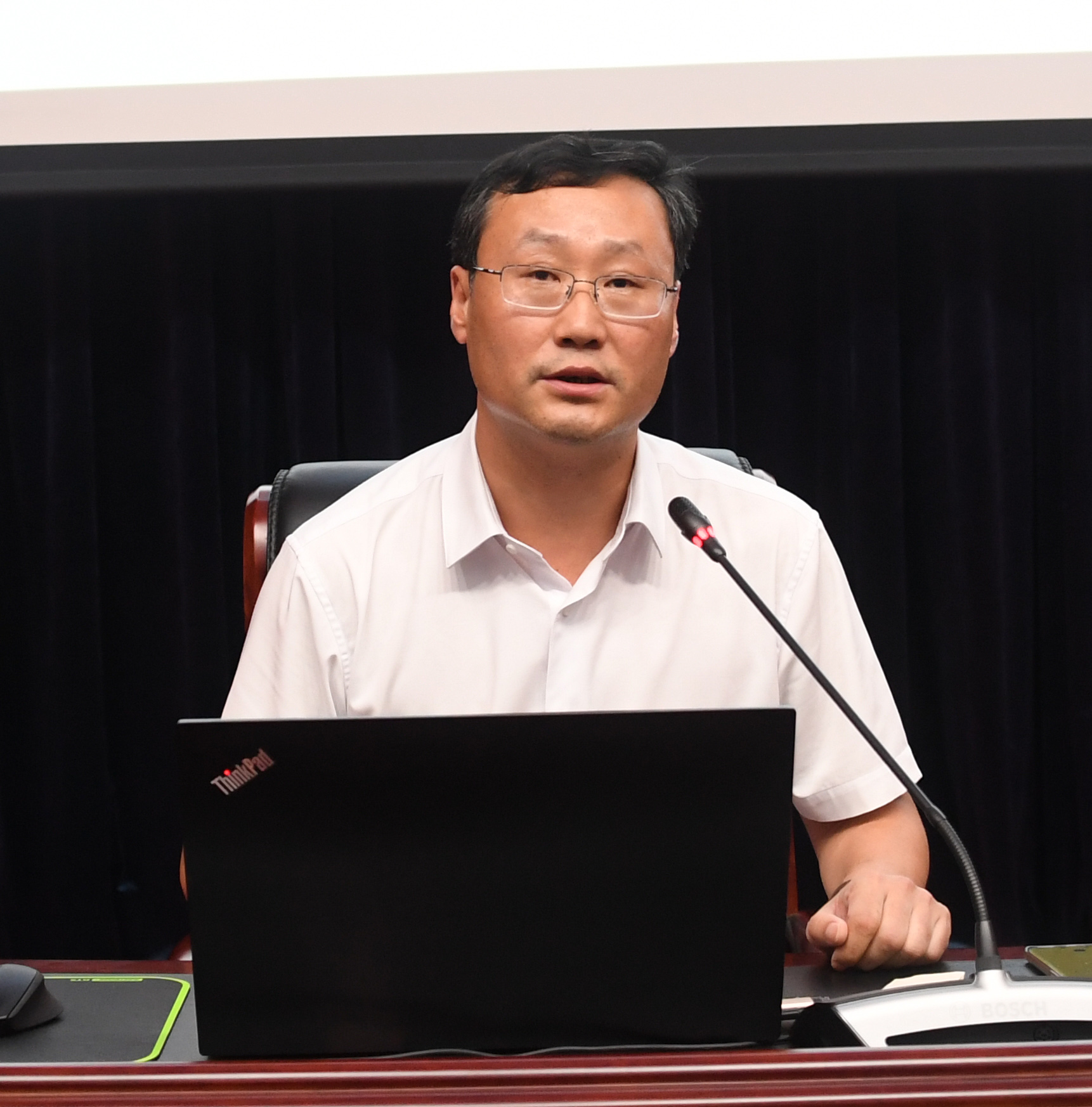 副校长刘守新作了题为《新时代,新使命,新作为,科学规划学校十四五科研工作》的汇报