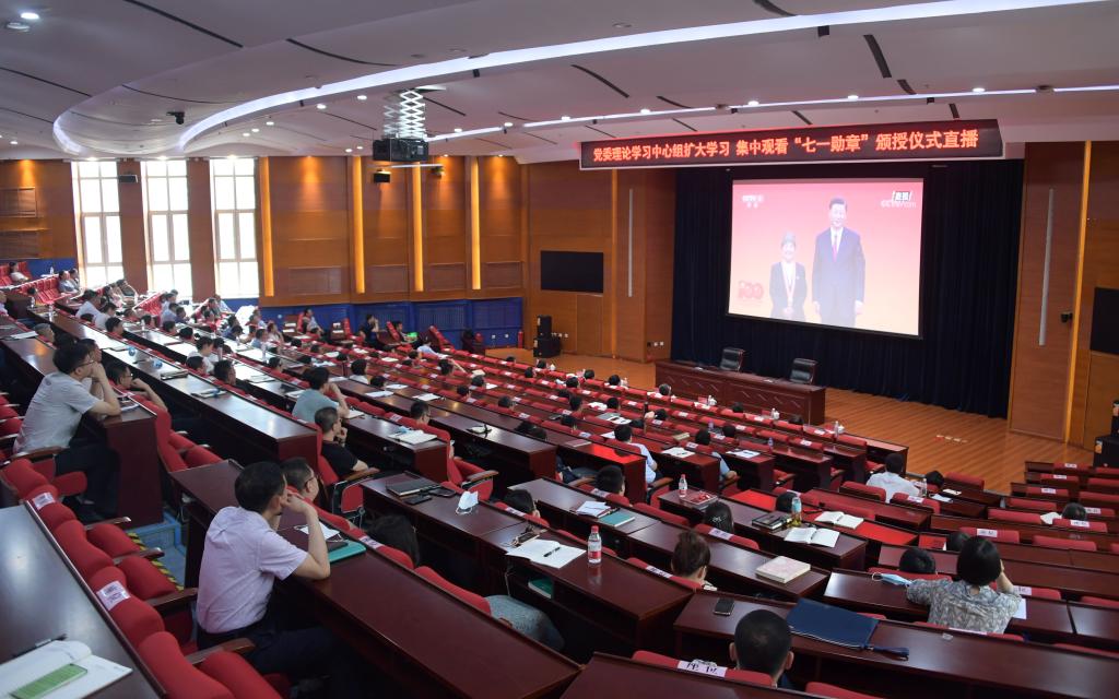 经中共中央批准,“七一勋章”颁授仪式于6月29日上午在人民大会堂隆重举行。中共中央总书记、国家主席、中央军委主席习近平首次颁授“七一勋章”并发表重要讲话。我校党委理论学习中心组和全体中层干部在成栋楼4楼会议室收看到颁授仪式直播,第一时间聆听总书记重要讲话。各学院也组织师生收看了直播。我校师生表示,要坚定信念、践行宗旨、拼搏奉献、廉洁奉公,在民族复兴的伟业中不懈奋斗。