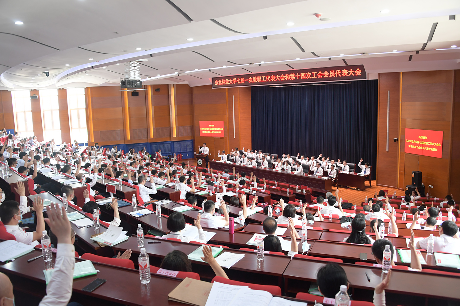6月19日8时30分,在学校党委书记张志坤主持的大会主席团第二次会议上,主席团成员认真听取了各代表团讨论情况汇报,并审议通过了《关于东北林业大学第七届教职工代表大会第一次会议的决议》(草案)、《东北林业大学第十四次工会会员代表大会决议》(草案)、《关于<东北林业大学章程修正案(草案)>的决议》(草案)、《关于<东北林业大学教育事业发展“十四五”规划>(建议稿)的决议》(草案)、《关于<东北林业大学职称制度改革的指导意见>和<东北林业大学职称评审基本标准>的决议》(草案)。