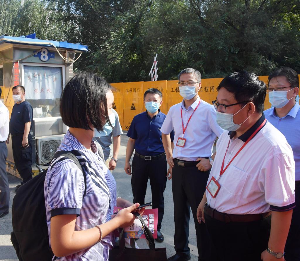 9月2日,是我校老生分批次返校首日,学校党委书记张志坤,校长李斌,党委常委、副校长雒文虎,党委常委、副校长翟雪峰在相关部门负责人的陪同下,深入学生返校现场看望慰问,并就开学相关准备工作进行指导。
